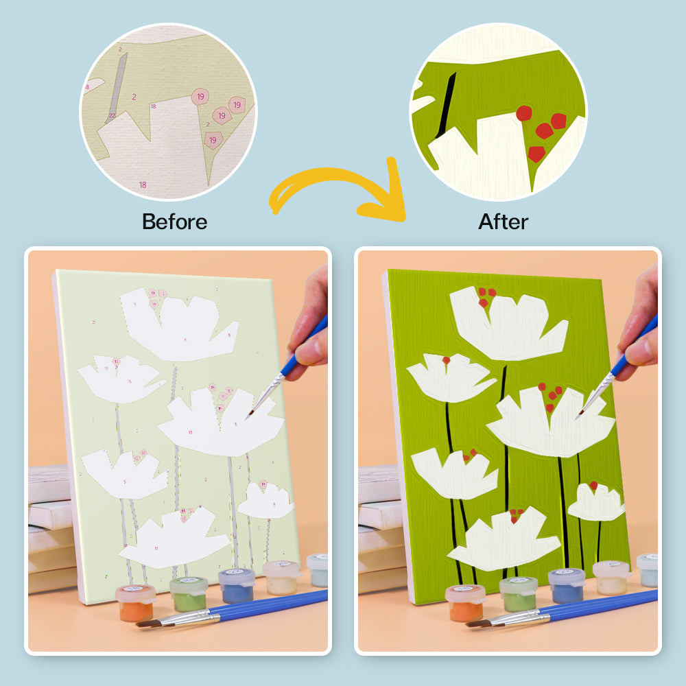 Dipingere con i numeri non richiede alcuna abilità pittorica per iniziare. Tutto ciò di cui hai bisogno per creare la tua opera d'arte è seguire le istruzioni e goderti il processo.