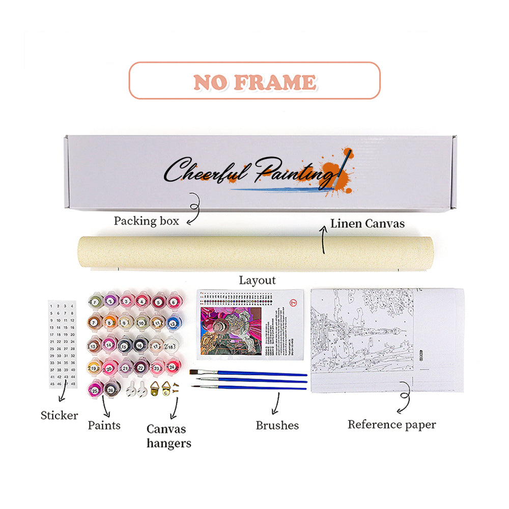 Scopri tutti gli elementi essenziali ben confezionati nel nostro kit Paint by Numbers. Con ogni componente etichettato e pronto per l'uso, puoi concentrarti esclusivamente sul tuo percorso artistico. Dai colori vivaci ai pennelli di precisione, ci siamo assicurati che nulla si frapponga tra te e la tua tela. Adatto sia ai principianti che agli artisti esperti, questo kit offre un'esperienza pittorica pura e ininterrotta.