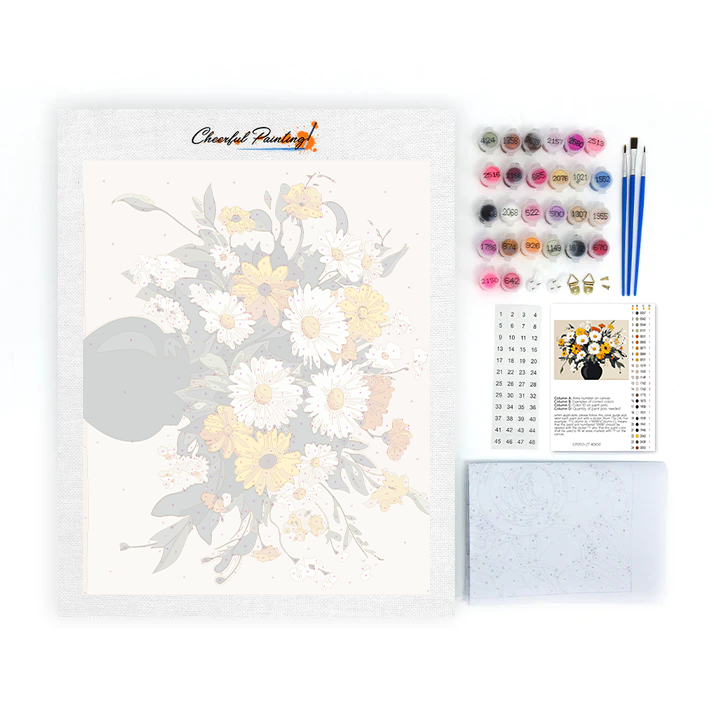 Scopri tutti gli elementi essenziali ben confezionati nel nostro kit Paint by Numbers. Con ogni componente etichettato e pronto per l'uso, puoi concentrarti esclusivamente sul tuo percorso artistico. Dai colori vivaci ai pennelli di precisione, ci siamo assicurati che nulla si frapponga tra te e la tua tela. Adatto sia ai principianti che agli artisti esperti, questo kit offre un'esperienza pittorica pura e ininterrotta.