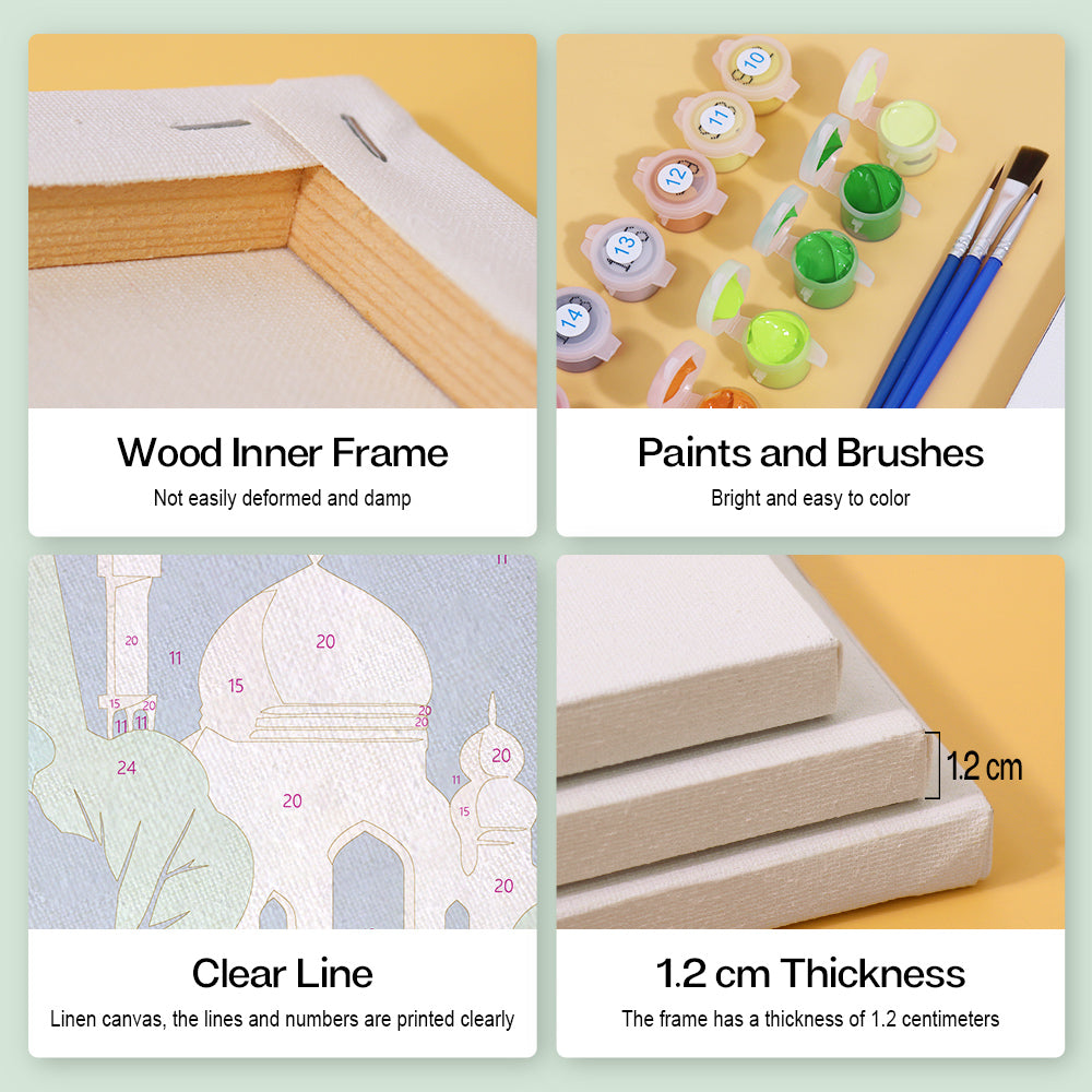 Scopri tutti gli elementi essenziali ben confezionati nel nostro kit Paint by Numbers. Con ogni componente etichettato e pronto per l'uso, puoi concentrarti esclusivamente sul tuo percorso artistico. Dai colori vivaci ai pennelli di precisione, ci siamo assicurati che nulla si frapponga tra te e la tua tela. Adatto sia ai principianti che agli artisti esperti, questo kit offre un'esperienza pittorica pura e ininterrotta.