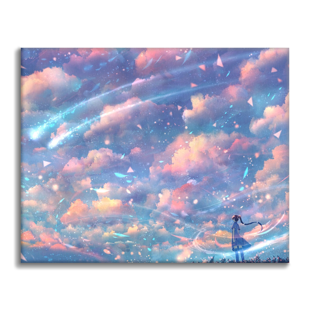 Ho lavorato a questo dipinto per giorni, vedere i progressi è incredibile. Sembra fantastico. Ho quasi finito e lo regalerò a mia madre. È bellissimo! Lo consiglio vivamente. Quando lo fotografi, sembra davvero una vera pioggia. È incredibile che questo sia un kit di pittura con i numeri.