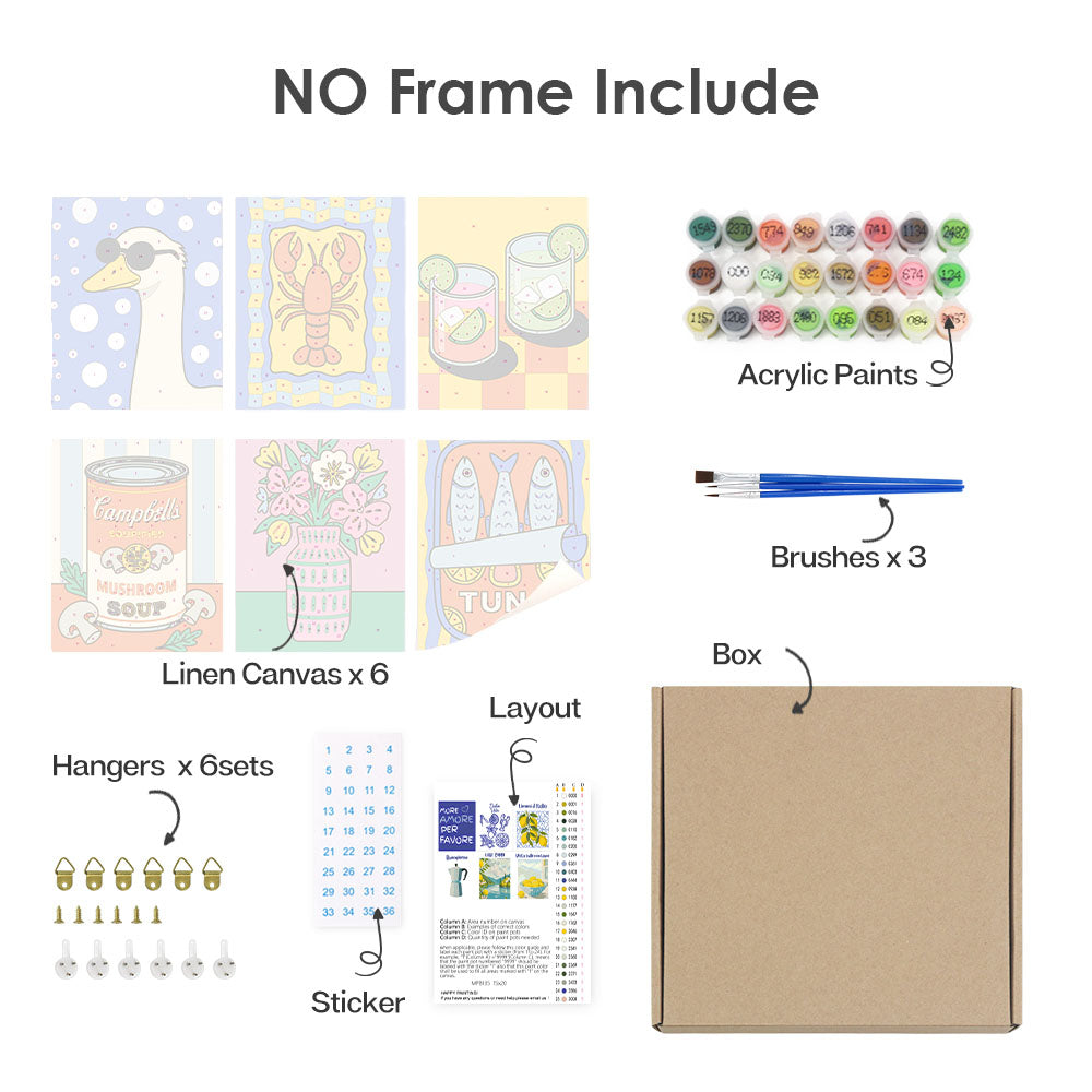Scopri tutti gli elementi essenziali ben confezionati nel nostro kit Paint by Numbers. Con ogni componente etichettato e pronto per l'uso, puoi concentrarti esclusivamente sul tuo percorso artistico. Dai colori vivaci ai pennelli di precisione, ci siamo assicurati che nulla si frapponga tra te e la tua tela. Adatto sia ai principianti che agli artisti esperti, questo kit offre un'esperienza pittorica pura e ininterrotta.