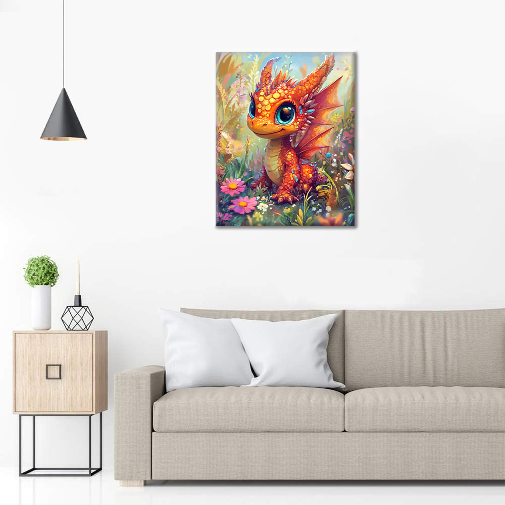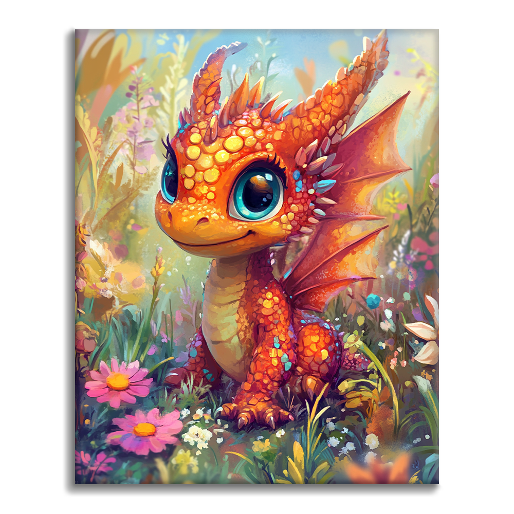 Cucciolo di drago in un paese delle meraviglie floreale